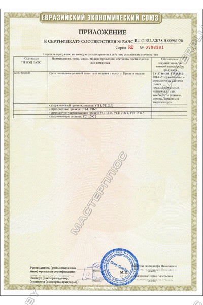 Система состоит из ремня с пряжкой, кушака, двух D-колец и ленточного стропа длиной 1,5 метра (полиэфирная лента, монтажный карабин и крепежная петля). Прошитый кушак обеспечивает удобство при длительном выполнении работ. Два D-образных элемента крепления расположены по бокам привязи. Используется для выполнения функций удержания от падения и поддержания рабочего на определённой высоте.