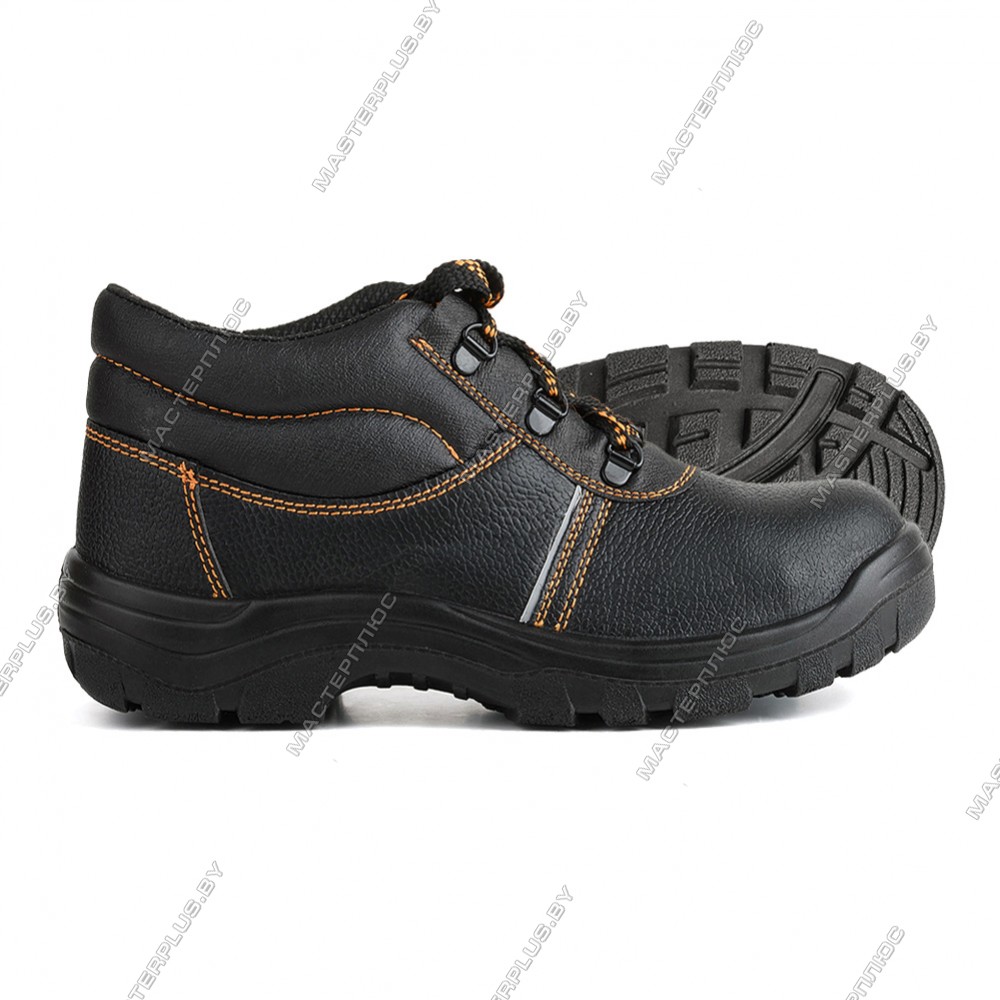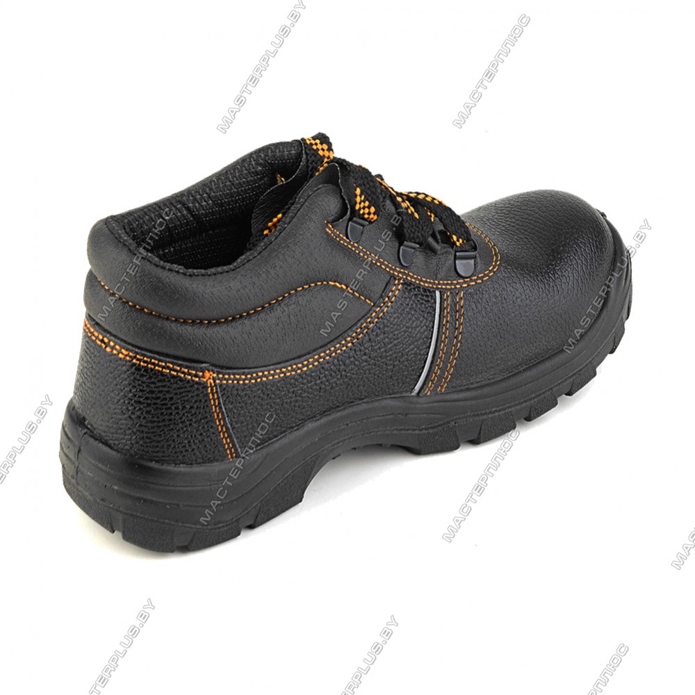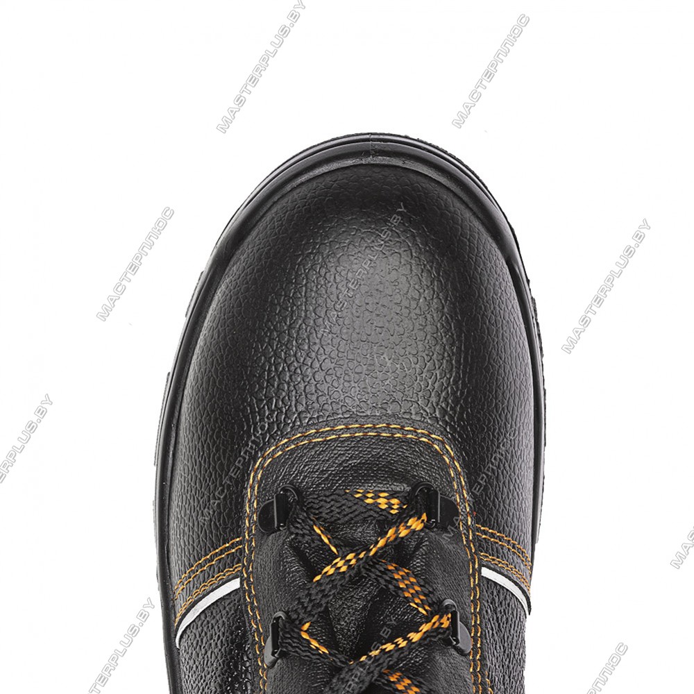 Верхняя часть обуви выполнена из кожи. Мягкий манжет в верхней части ботинок обеспечивает комфортную фиксацию и защищает голеностоп. Клапан глухой конструкции не позволяет загрязнениям попасть внутрь. Светоотражающие элементы по бокам союзки для лучшей видимости. Высота ботинок 14 см. Подкладка выполнена из гигроскопичного текстильного материала, обеспечивающего комфортные условия носки. Подносок формованный, из термопласта с защитой от механических воздействий и ударов. Жёсткий задник. Лёгкая и прочная полиуретановая подошва с амортизатором в пяточной части крепится литьевым методом, устойчива к воздействию кислот и щелочей концентрацией до 20%, нефтепродуктов, антистатична.
